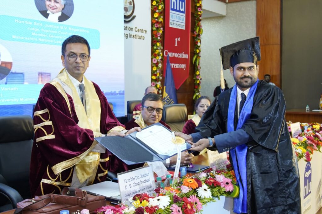 He was awarded Gold Medal by Justice D Y Chandrachud, Judge Supreme Court of India and Chancellor Maharashtra National Law University Mumbai in the Convocation ceremony held at Maharashtra Judicial Academy, Mumbai.