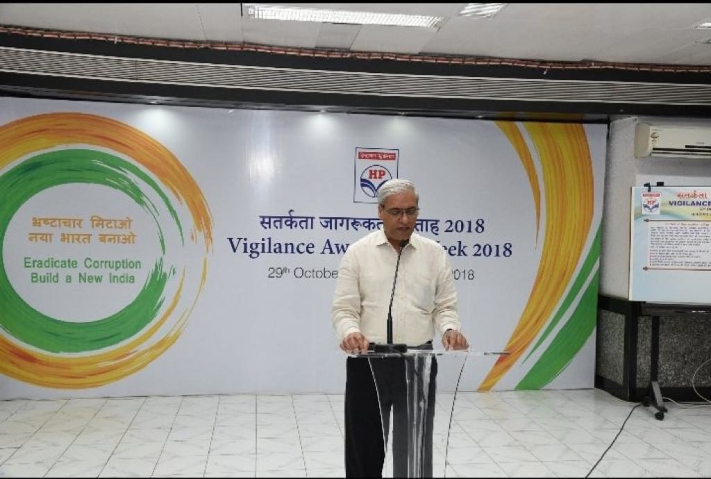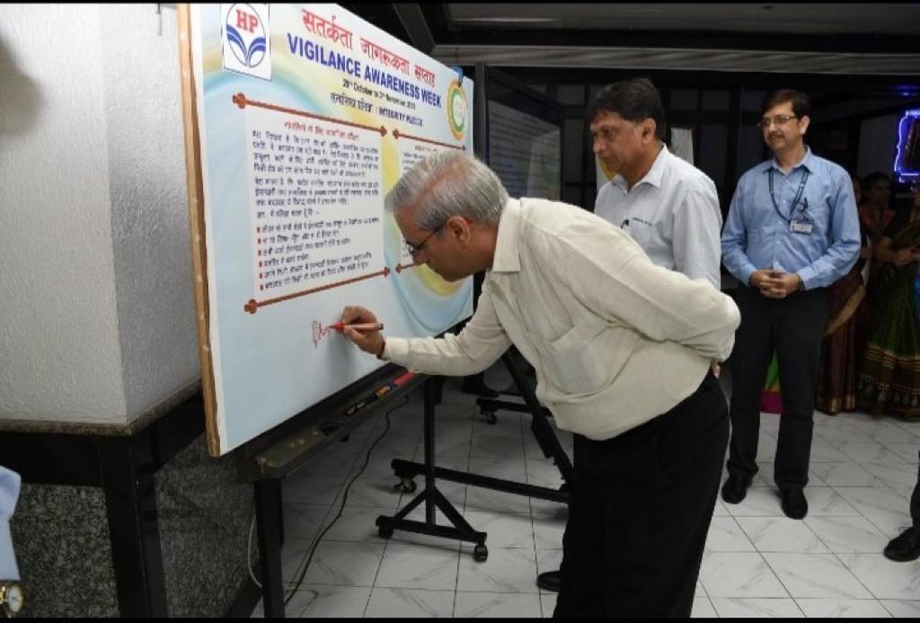 HPCL is observing Vigilance Awareness Week from 29th October to 3rd November, 2018. This year’s theme is ‘Eradicate Corruption – Build a New India’. It is commenced by administration of pledge by C&MD and Dir-HR at HPCL Headquarters, Mumbai. This was followed by signing of pledge board by the employees at headquarter.