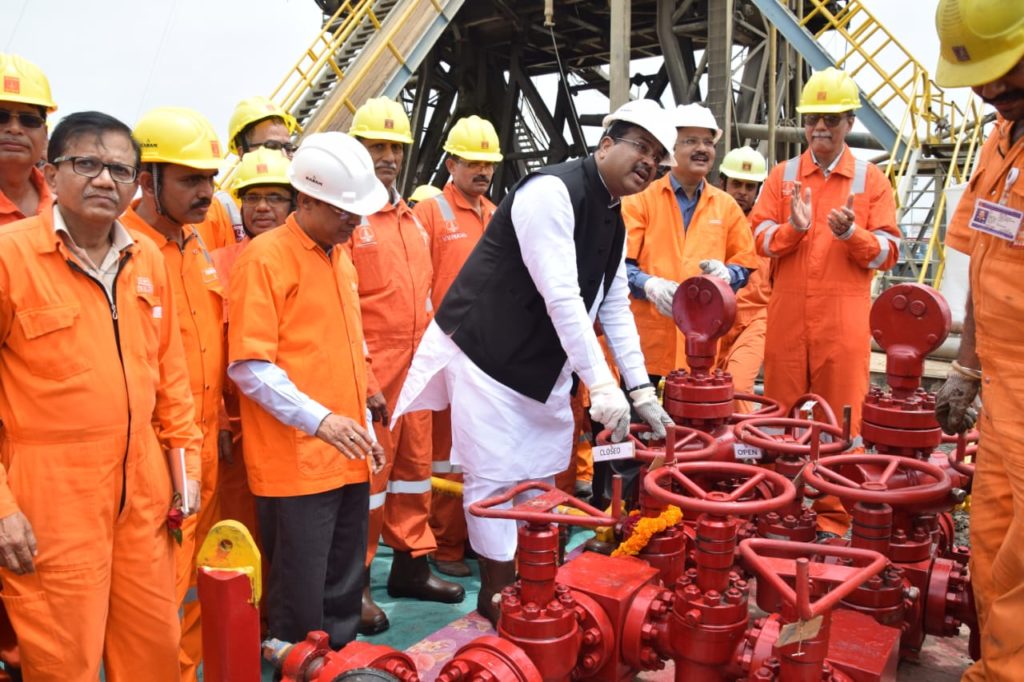 Mr. Dharmendra Pradhan, Hon’ble Minister of Petroleum & Natural Gas and Skill Development & Entrepreneurship visited the drilling installation and CPF Gandhar of Ankleshwar Asset in Gujarat. Mr. Pradhan was overjoyed to personally put the Well #DJDG on production as it spudded gas.
