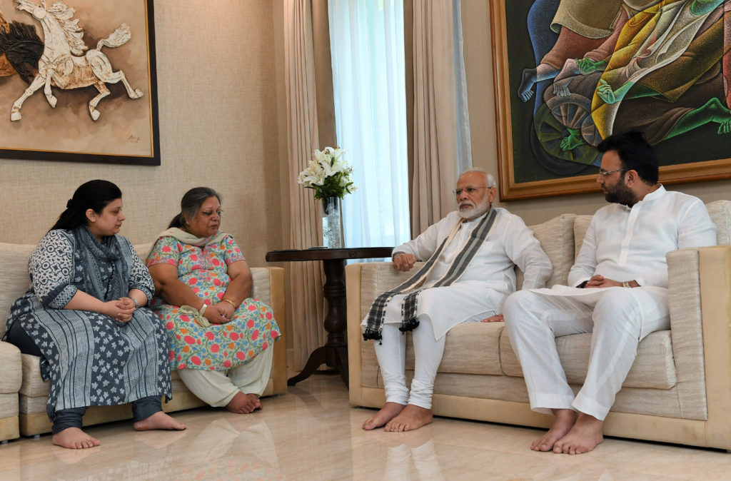 Prime Minister Narendra Modi visited the family members of former Union minister Arun Jaitley at his residence here on Tuesday and offered floral tributes to a portrait of the departed leader. Jaitley (66) passed away at the All Institute of medical Sciences (AIIMS) here on Saturday.